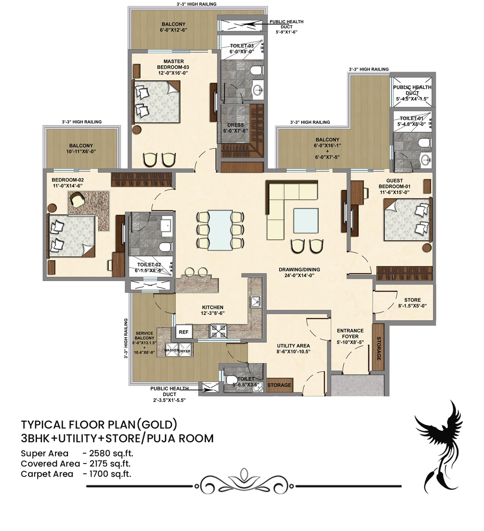 Geyser locations outside washrooms - All electrical wiring in concealed conduits, provision of adequate light and power points. Telephone, Internet, Intercom, DTH / Cable and TV outlets in Drawing, Dining and all Bedrooms, Moulded Modular Plastic Switches & Protective MCB’s