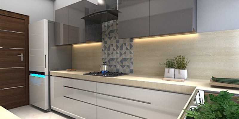 CABINET/COUNTER : Modular Kitchen without Chimney and Hob Marble/Granite/Engineered Marble Counter Top.